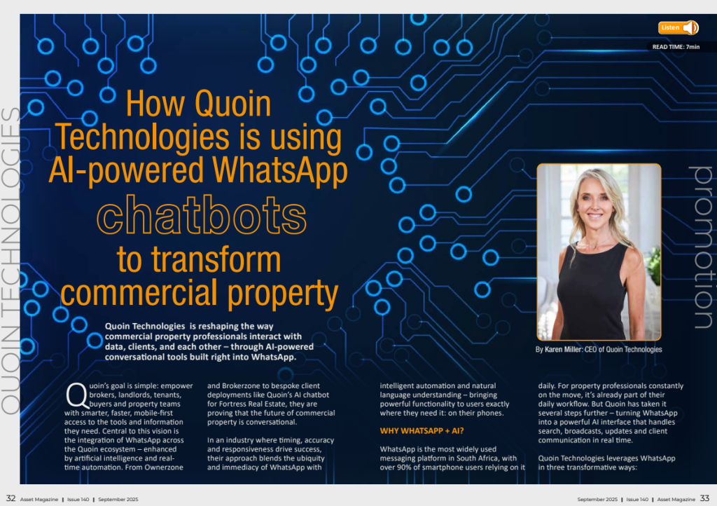 Quoin Technologies is reshaping the way commercial property professionals interact with data, clients, and each other – through AI-powered conversational tools built right into WhatsApp.